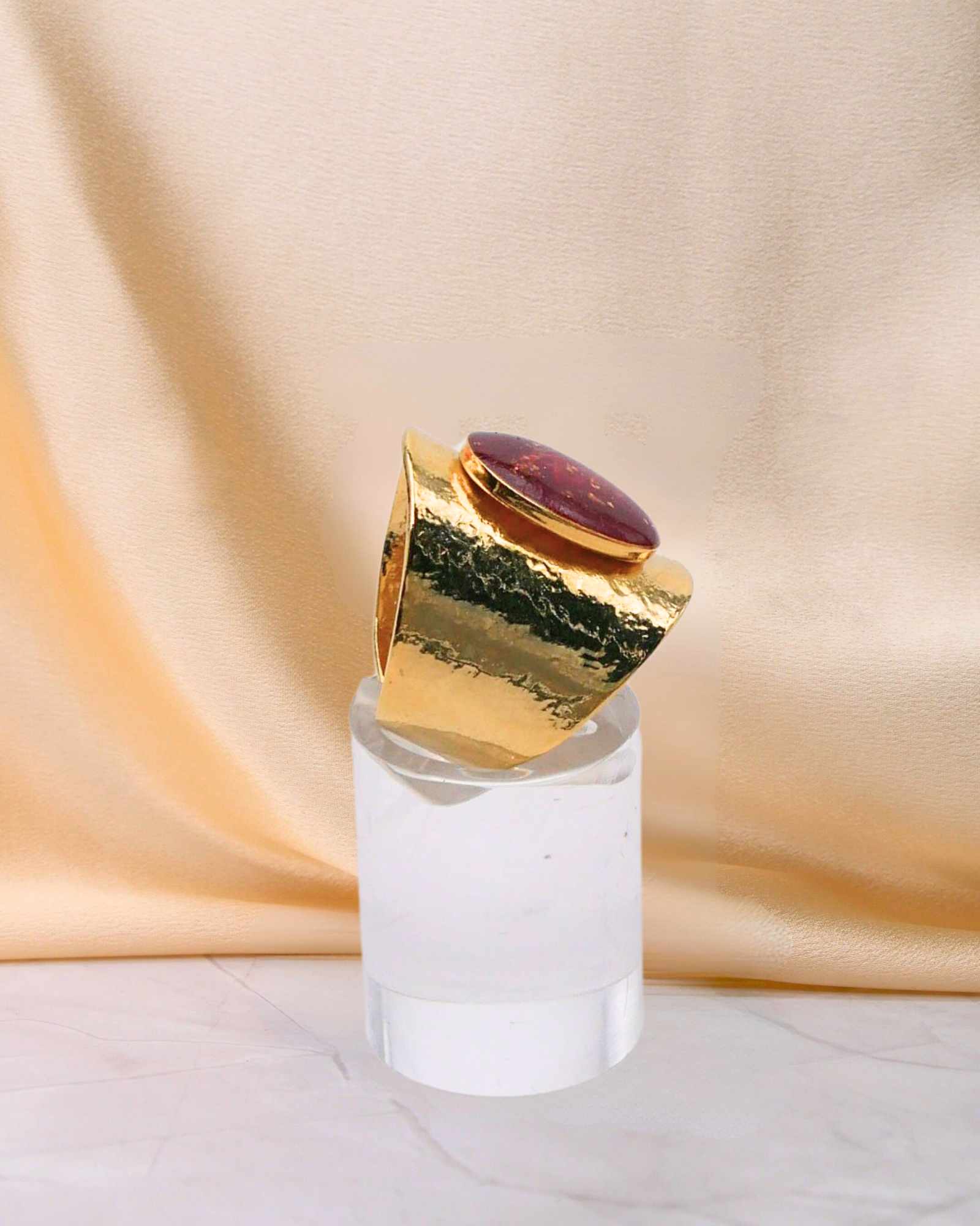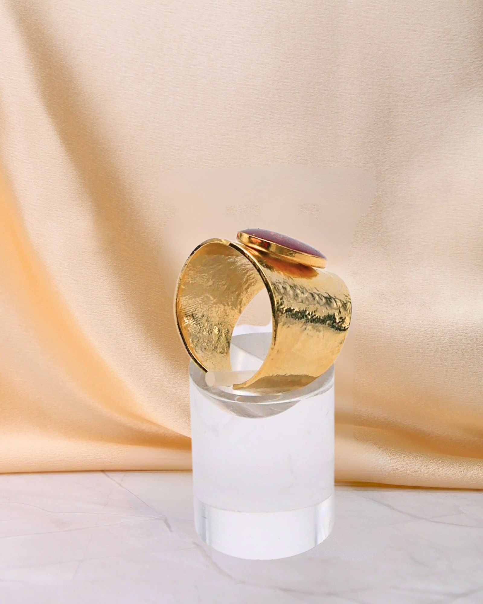 La bague Virginy est réglable et en acier inoxydable avec son motif bordeaux façonné à la main. Son design vibrant et lumineux est parfait pour apporter une touche de sophistication à votre look. Un choix idéal pour un style à la fois doux et audacieux.
