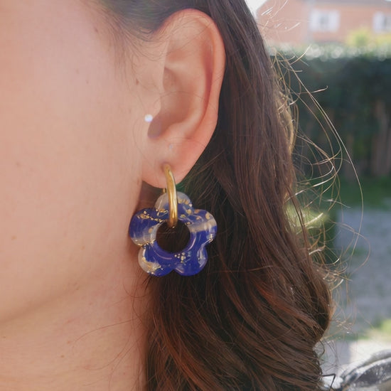 Si vous préférez des boucles d'oreilles plus discret, découvrez aussi nos créoles petites fleurs bleu électrique.