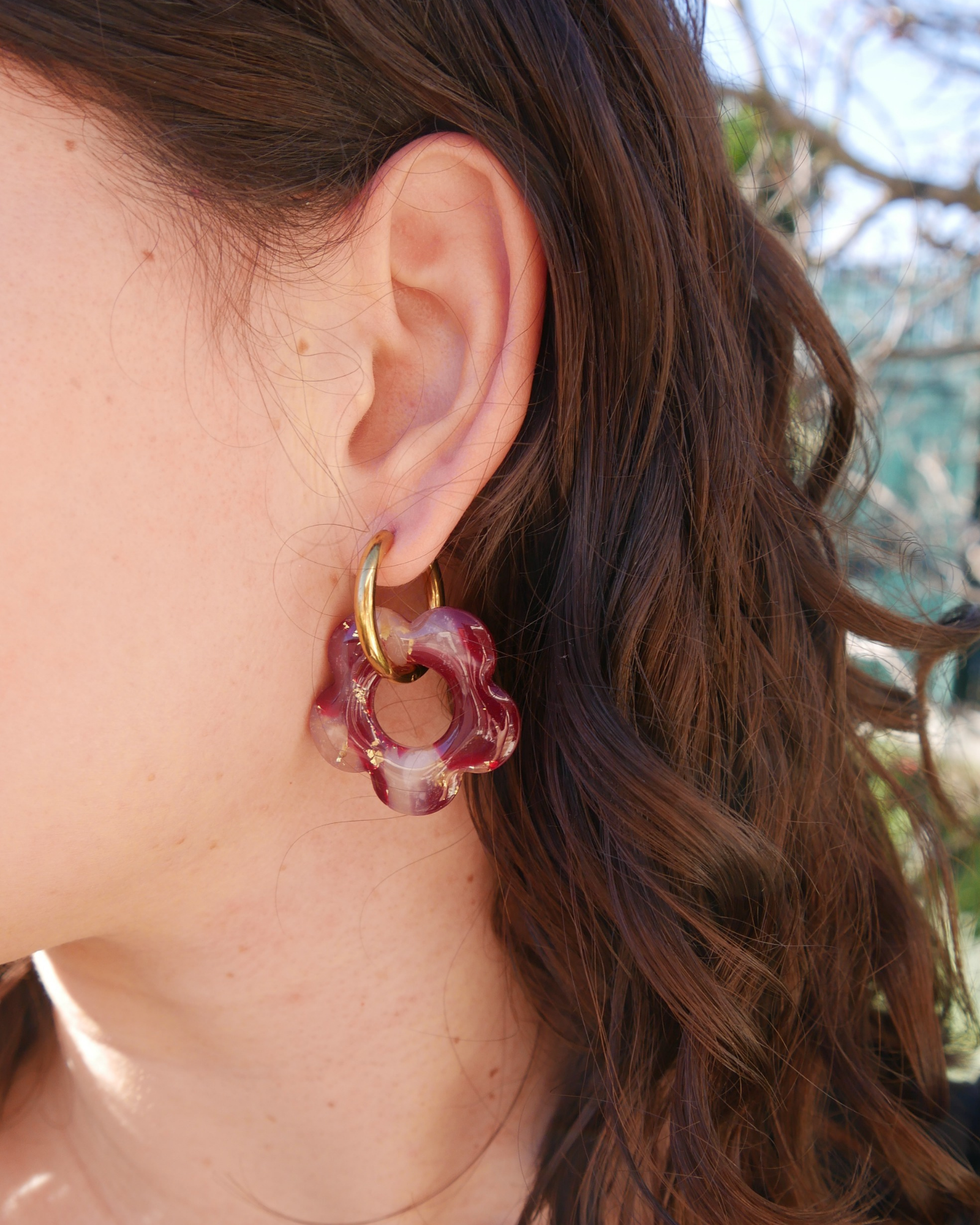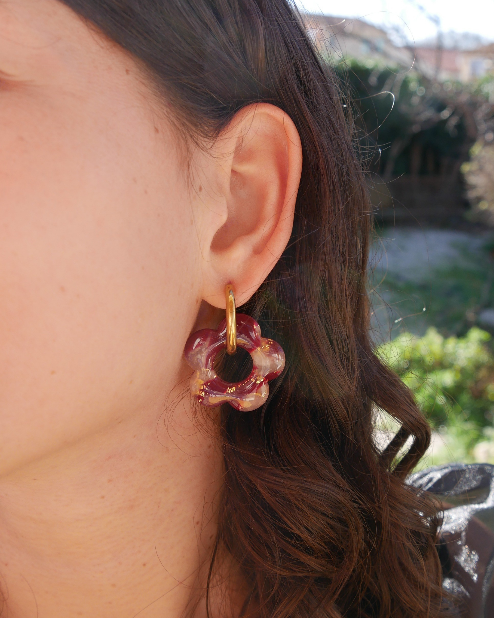Vous préférez un style plus discret ? Les créoles petites fleurs bordeaux vont vous plaire.